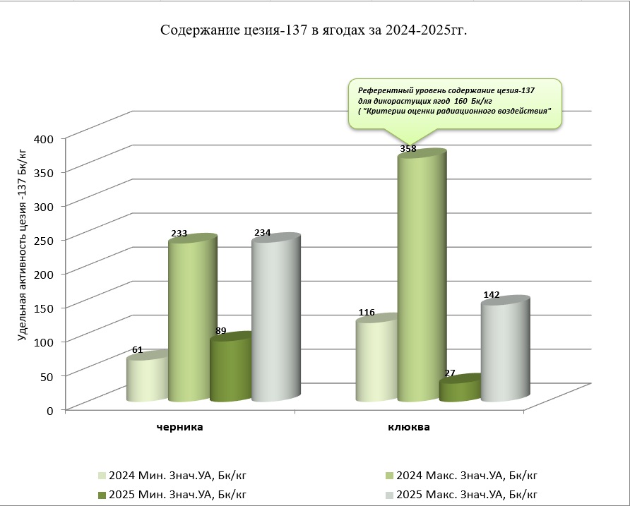 Содержание цезия-137 (среднее, максимальное) в лесной продукции в течение последних 3-х лет(2023-2025 г.)